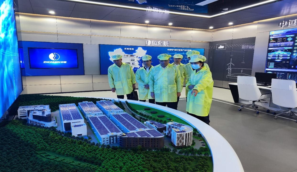 葉副廳長一行來到SMT全自動生產(chǎn)線、智能倉庫、零碳工廠展廳參觀。呂總介紹了富陽中恒產(chǎn)業(yè)園的基本情況和41畝新廠區(qū)項目的整體規(guī)劃及建設(shè)情況。葉副廳長詢問了生產(chǎn)工藝、訂單情況、技術(shù)創(chuàng)新等方面問題,詳細了解公司運營情況和配套設(shè)施建設(shè)情況,對公司的建設(shè)成效給予了高度肯定,勉勵中恒電氣把握區(qū)位優(yōu)勢,當好融入長三角一體化高質(zhì)量發(fā)展的排頭兵。